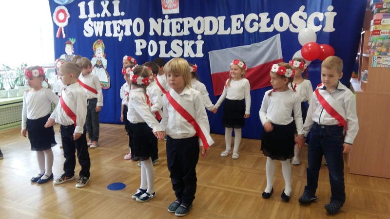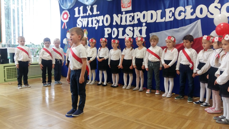 W dniu 08 11 2019 r. dzieci z grupy V „Szafirki” zaprosiły wszystkie Panie i Panów oraz dzieci z przedszkola na występ artystyczny zorganizowany z okazji Święta Niepodległości Polski. W galowych strojach, pełne powagi i przejęcia doniosłością wydarzenia uczciły pamięć tamtych dni.