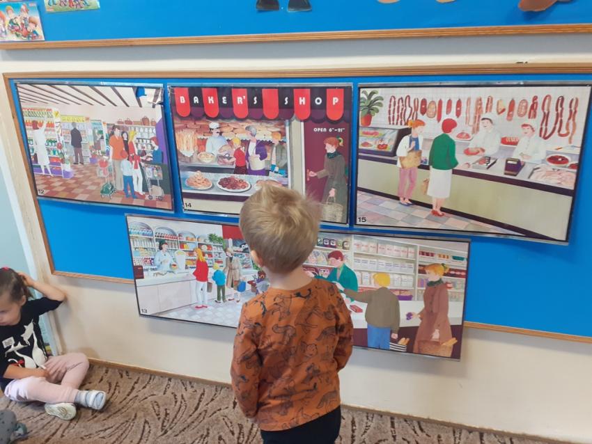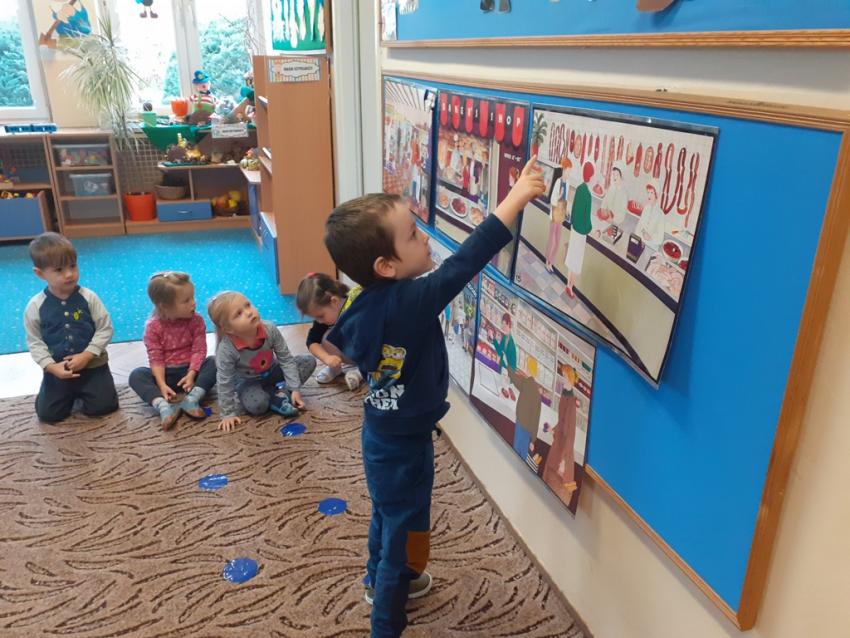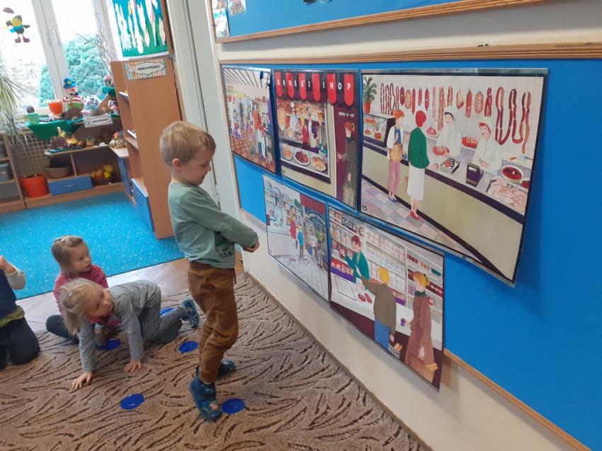 Na początku listopada dzieci z grupy I Krasnale na zajęciach poznawały różne rodzaje sklepów. Podczas zajęć wykonywały prace plastyczne, poznały pracę sprzedawcy, układały historyjki obrazkowe - jk po kolei i prawidlowo zrobić zakupy. Poznały zasady zachowania się w sklepie. Wybrały się również na spacer po najbliższej okolicy przedszkola w poszukiwaniu różnych rodzajów sklepów. W sklepie mięsnym zostaliśmy nawet poczęstowani pysznym kabanosikiem :)